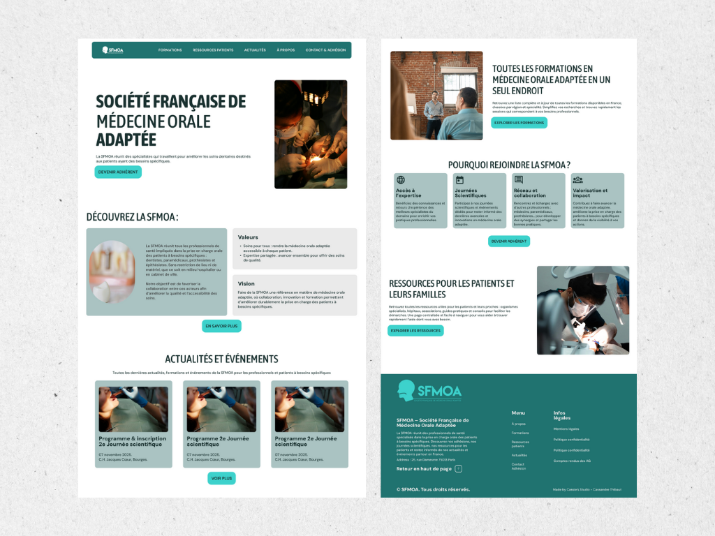 Dans le cadre de ma collaboration avec la SFMOA, j’ai conçu et développé leur site internet via Wix Studio. Ce choix répondait au besoin de mon client de pouvoir gérer facilement le site en toute autonomie. J’ai structuré le projet autour de trois bases CMS : Actualités pour dynamiser la communication, Formations pour valoriser les événements et modules pédagogiques, Ressources patients afin de centraliser et faciliter l’accès à des contenus utiles. En complément, j’ai mis en place une structure SEO de base afin d’améliorer la visibilité du site sur les moteurs de recherche. Ce projet a permis de doter la SFMOA d’un site moderne, évolutif et accessible, parfaitement adapté à ses enjeux de communication digitale.
